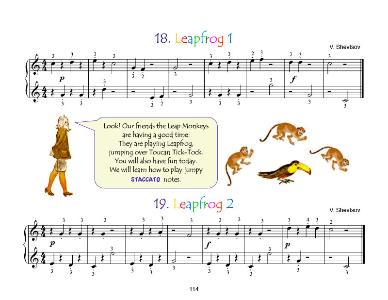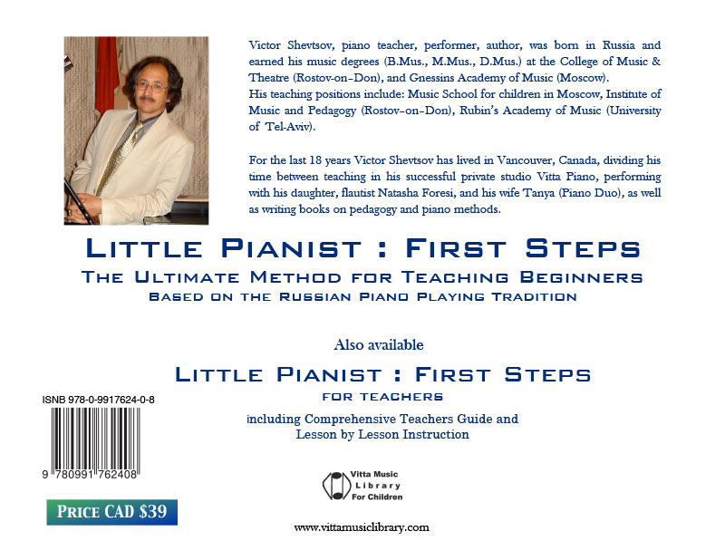 Little Pianist First Steps is based on the tradition of Russian Piano School. The main principle is freedom and flexibility in all elements of piano technique. In our method, we avoid at the beginner stage any kind of fixed, five-finger-positional playing, which can cause tension, stiffness of hands and unclear articulation.