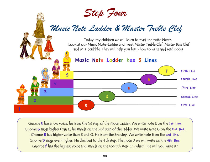 We teach music rhythm and notation in a very attractive and easy to understand way. Fairytale situations, funny characters and great illustrations make it fun for small children.